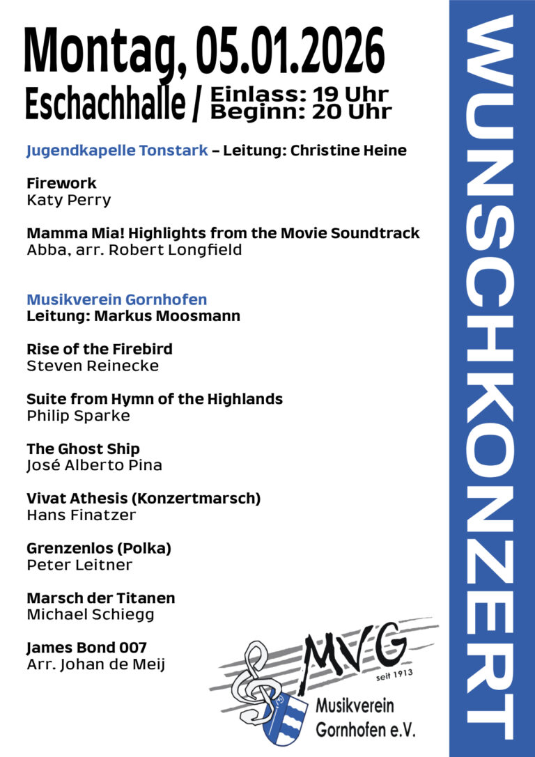 0 Jahre Begeisterung für Musik Bankverbindung für Spenden:IBAN: DE51650625770081233000BIC: GENODES1TETKreditinstitut: Volksbank Bodensee-Oberschwaben mvgornhofen 📍 Gornhofen, Ravensburg 🎺 Probetag: Freitag 20-22 Uhr 📅 Auftritte auf unserer Website 🍾 Blutfreitag Aftershow Party in Bauren 1 Kameradschaftsabend 🇮🇹🍹 Danke @musikverein_gruenkraut für die Nominierung. Unser Wochenende 🤍💙 🍹Musikfest 2025🍹 Nun ist unser Musikfest auch sch Mehr laden… Auf Instagram folgen